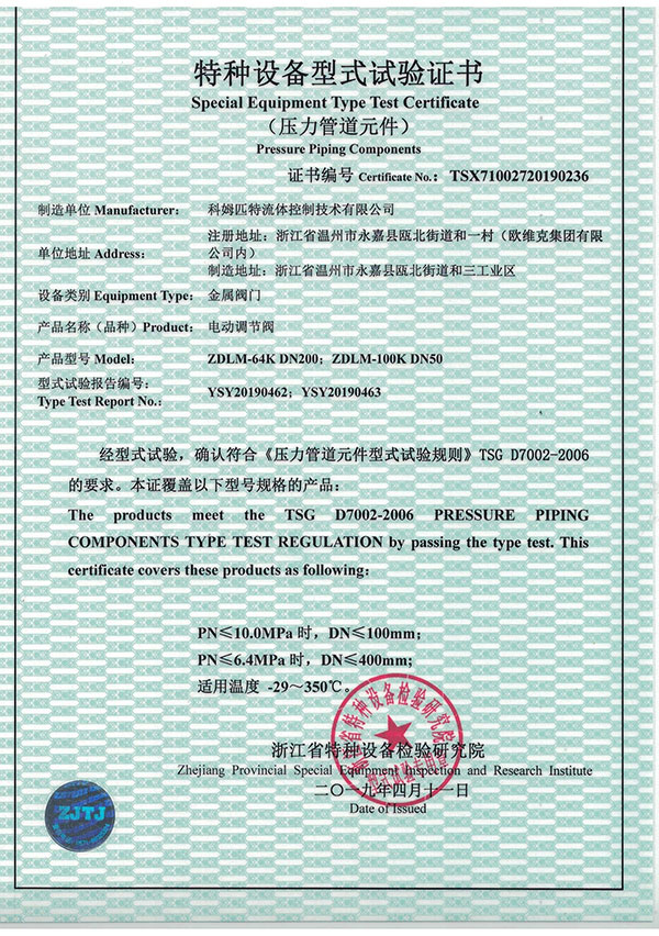 特種設(shè)備型式試驗(yàn)證書(電動(dòng)調(diào)...