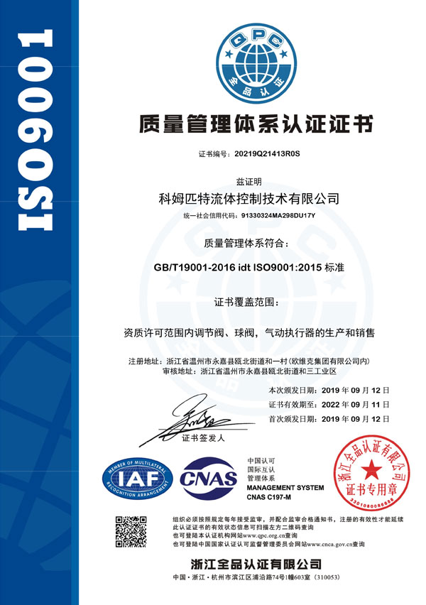 質(zhì)量管理體系認(rèn)證證書
